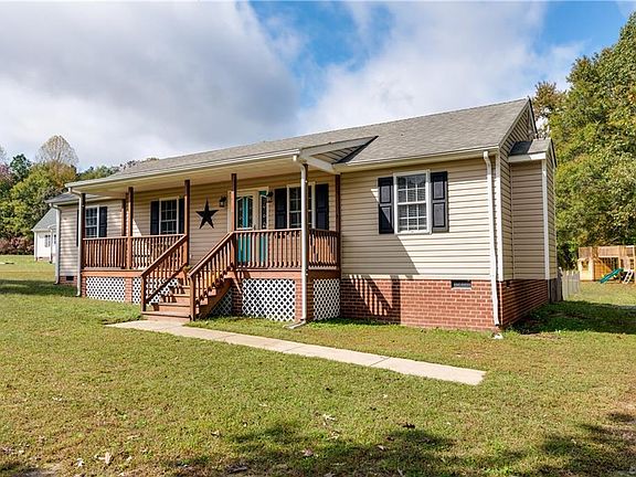 No money down needed to purchase this beautiful home! Perfect as a 1st home or if looking for easy 1 level living in the friendly neighborhood of Parkwood Estates. A perfect little slice of peace & quiet situated on approx 1.15 acres w/a welcoming covered front porch where you can sip your morning coffee! Featuring 3BR/2BA and 1362sf of living space.The BRs feature generous size closets & fans & the primary BR has a spacious en-suite private bath, jetted tub, built in linen closet & extra cabinets. The kitchen comes equipped w/ an abundance of 36" custom oak cabinets, natural oak crown molding, recessed lighting, flat top stove, & walk-out bay dining area overlooking the huge backyard where you can watch wildlife. The sun filled FR is vaulted w/ 2 fans, gas FP w/marble surround. New wood laminate floors throughout living areas, new vinyl in kitchen/baths, freshly painted trim/baseboards. Nice sized walk in laundry/mudroom leading in from the back deck off the kitchen. Enjoy grilling & entertaining on the deck and all the peace & quiet of country life. Plenty of room to build your dream garage, spacious shed for storage & eligible for USDA Rural Development No Down Payment Loan.