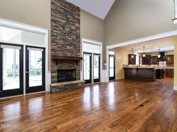 Beautiful home located in the desirable Hunters Ridge subdivision finished with modern touches, an open concept living space, four bedrooms plus a bonus room, a whole home generator and NO city taxes! Enjoy the neighborhood from the rocking chair front porch. Relax in the living room under an 18ft vaulted ceiling by a cozy gas log fireplace while playing your favorite tunes through the built-in surround sound speakers. Easily entertain guests as you work from the kitchen; complete with stainless steel appliances, granite countertops, an island and large pantry. Host dinner parties in the formal dining room that has crown molding and wainscoting for added elegance. After a wonderful meal, head out onto the screened-in porch where you can appreciate ENC weather year-round. A detached building in the yard is ready to assist in yard and home projects or some added storage space. At the end of the day, retreat to the first floor master bedroom where you have an en suite bathroom offering a dual sink vanity, walk-in shower, jetted tub and walk-in closet. Three spare bedrooms offer guests a comfortable room of their own. Use the bonus room as a private home office or a fifth bedroom for guests to stay. This home is located only a half mile away from a public boat ramp and just minutes from Historic Downtown New Bern. A quick drive takes you to MCAS Cherry Point or North Carolina's Crystal Coast Beaches! Contact us today for your private tour.