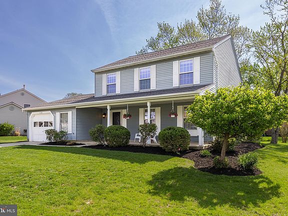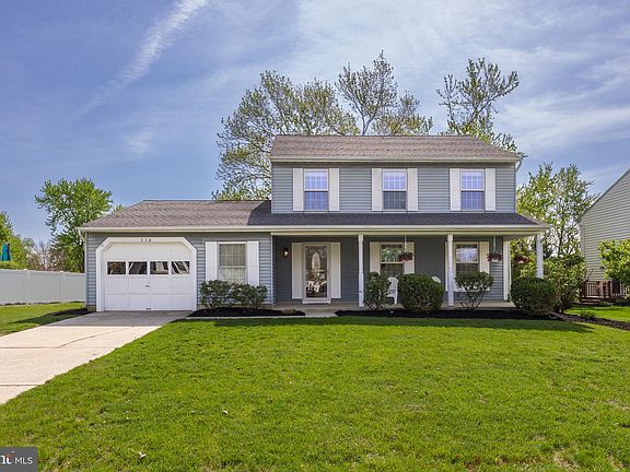 This freshly painted and light filled 3 bedroom, 2.5 bath classic style home is in desirable Marlton and is situated on a quiet street but is close to everything. It has a charming front porch overlooking the beautifully landscaped front yard making it a perfect place for enjoying your morning coffee or relaxing in the evening. As you enter the home, you will notice the spacious Living room that flows into the Dining room making it perfect for entertaining friends and family. The eat in Kitchen features white cabinetry, a window above the sink to enjoy the back yard view and a large pantry. The adjoining Family room features a sliding door overlooking the back yard. On the first floor you will also find a conveniently located Laundry room, updated Powder room and inside access to the garage. On the second floor, the Primary Bedroom is large with ample closet space and the attached Bathroom has been totally renovated with on trend neutral tones There are two additional Bedrooms and a hall Bathroom which has also been recently updated in neutral colors . The nicely landscaped large back yard provides a place to grill, enjoy the fire pit on cool evenings, entertain or enjoy the peace and quiet. This well maintained move in ready home has triple pane windows for energy savings and low electric bills! There is also a shed for storage. Showings start on Friday, May 2nd.