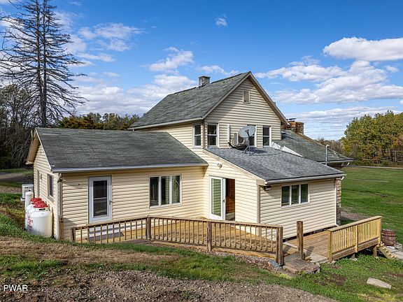 Updated 1900 Farmhouse on 2.3 Acres - No HOA- Oversized, 2-Car Garage!Discover the perfect blend of vintage charm and modern living in this fully renovated farmhouse built in 1900, set on 2.3 peaceful acres with no HOA restrictions bordering 48 acres of woodland beauty. This unique property offers character and versatility, ideal for those seeking a lifestyle rooted in history with all the comforts of today. The gourmet kitchen features new, stainless steel appliances, gas cooking, granite countertops, and plank, porcelain tile floors. Architectural features such as the tin ceilings and exposed beams make this home extra special. The Living Room has a wood burning fireplace and all new windows. The main floor has 2 bedrooms (one can be used as an office or game room). The upper floor has a spacious primary suite created by merging two former bedrooms into one, offering a luxurious retreat with a full en-suite bathroom. The Fujitsu Split Unit keeps the upstairs comfortable with AC & heating. The home has a brand new septic system, updated electrical panel & newer furnace!! The outside highlights include the historic Milk House, a rare gem from the original homestead. There is also an oversized, 2 car garage with a separate electric meter for flexible use as a workshop or hobby area. The new deck has views of the expansive yard with mature trees and open space for gardening, recreation, or future expansion. A peaceful country setting with room to roam, yet close to recreational areas including Lake Wallenpaupack and the historic towns of Honesdale and Hawley (named the top best kept secrets of the north Pocono Mountains).