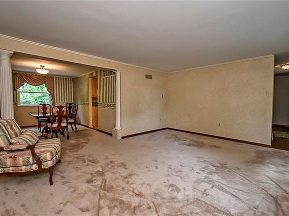 Location, privacy and updates throughout! Spacious living room leads to the columned dining room. Eat-in kitchen offers shaker style light maple cabinetry and newer French style stainless refrigerator. Family room has brand new carpeting, log burning fireplace and slider to the rear deck overlooking the 1+ acre wooded back yard. Four nicely sized bedrooms. Primary bath provides ceramic shower stall, glass doors and single vanity. Improvements include new refrigerator 2019 with 3 year warranty, microwave 2018, roof and siding 2016, gutters 2016, Anderson patio door 2016, all new windows Champion 2014 and Feb 2015, mold remediation 2020 with transferable warranty, front door 2011, fireplace new liner and damper 2008, Carrier Heat Pump 2008, hot water tank 2008, garage doors 2007. Radon tested in Feb 2019 @ 0.9. Washer and dryer included. Welcome home!