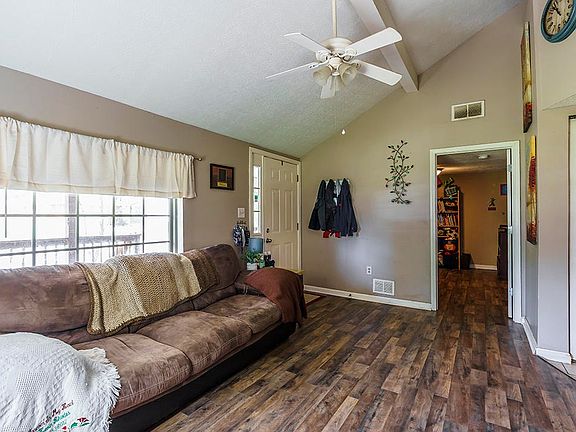 Quintessential Berea Kentucky Home! This adorable 3 bedroom home is located on a quiet street just seconds from town with a perfectly flat back yard! Main level features laminate flooring in the great room + 2 generously sized bedrooms (11'4'' x 12'5'' and 11'5'' x 11'7'') and tile in the fully equipped kitchen! Main level also boasts a full bathroom and laundry space. Upstairs is the 3rd bedroom & small nook space. Outside you'll LOVE the covered front porch that was recently stained, concrete patio area, 8' x 12' storage building, fireplace area & lots of room to play.