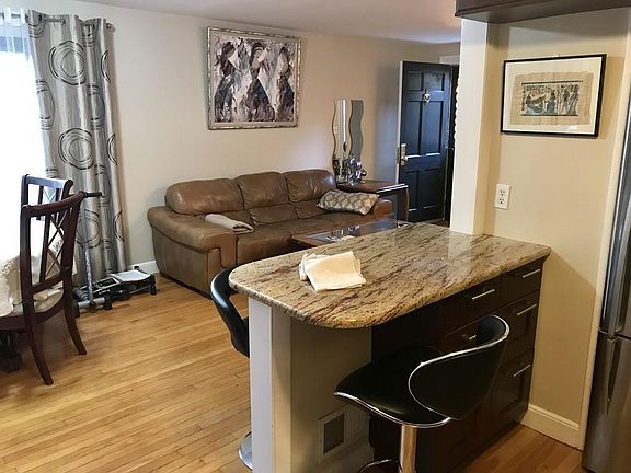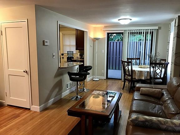 Renovated 2BR townhouse with parking, central AC, in-unit laundry, plenty of basement storage and private patio. Both bedrooms can accommodate queen to king size beds and have generous size closets. Gleaming hardwood floors, renovated kitchen featuring granite countertops and stainless appliances, breakfast bar and dining area between the kitchen and living room, renovated bathroom. Enjoy a semi-enclosed patio off the dining room and a swimming pool. Condo rules don't allow pets and smoking. Parking spot #466. During winter months management company lets residents know about additional parking spaces people can rent for $48-50/month. First come first served basis.