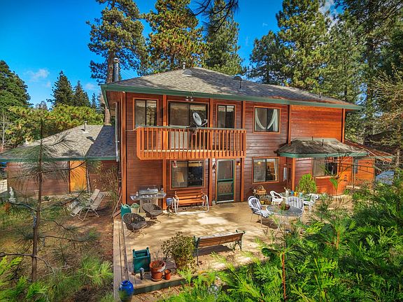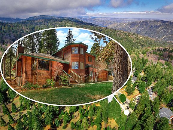 Sprawling Mountain Retreat with panoramic views located near Lake Gregory! Wander about the grounds on this private 18464 sq ft lot and discover the exceptionally quiet and secluded haven! Warm wood beamed ceilings and paneling throughout this 5 Bedroom home built in 1992. Large open Kitchen with center island and granite countertops. Family Room off Kitchen with a pot belly fireplace/stove. Living Room/Dining Room offers plenty of space to entertain and relax by the fireplace. 4 Bedrooms plus loft upstairs with one bedroom/office downstairs. Master Bedroom with ensuite bath, features spa tub and separate enclosed shower. Circular driveway greets you with lots of parking and RV access plus 3 car attached garage and storage shed. Expansive decks located off the back of the home provide the perfect place to rest, while enjoying the views! Well maintained home, awaiting your personal touches!