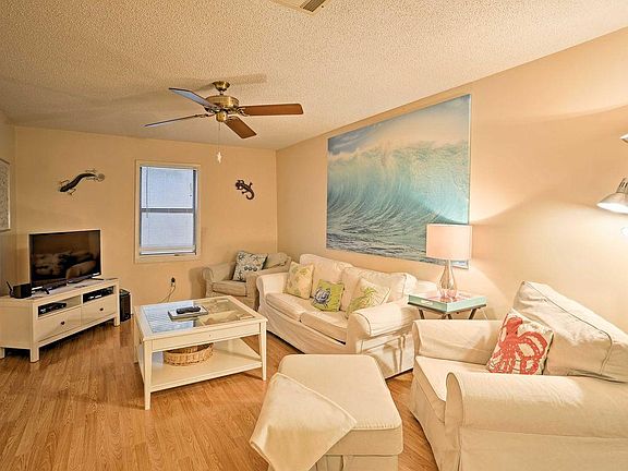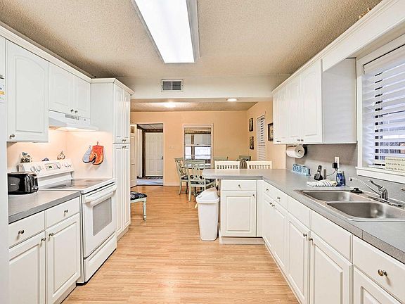 This great Beach Cottage is steps to beautiful Laguna Dedicated Beach. Gulf view from front yard. This beach house has been updated with a new roof and siding as per owner. New central heat/air in 2010, as per owner. Kitchen updated with white cabinets with a pantry, smooth top stove and side by side refrigerator. Extra deep carport and a garage. Large 10x30 closed in front porch offers extra sleeping room. This lot is larger than most this close to the Gulf-- 60 1/2 x 150.
