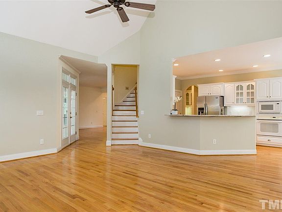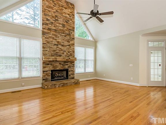 Exceptionally maintained custom beauty in Cary! 4 bedrooms + bonus! 1st Floor Master Retreat w/sitting area & huge closet! Renovated kitchen feat Level V granite, subway tile backsplash & undermount lights. Granite counters in Mstr Bath. Vaulted ceilings in Master Bath & Living Rm. Stacked stone Fireplace. Hardwoods much of 1st flr. Walk in attic. New carpet upstairs! TRANE A/C replaced in 2012. Tankless Rinnai H20 heater. Screen porch, oversize patio + custom storage building. Picturesque flat backyard!