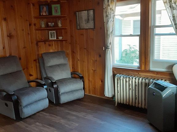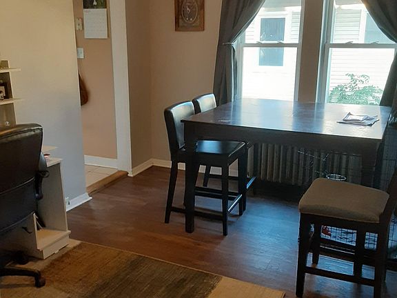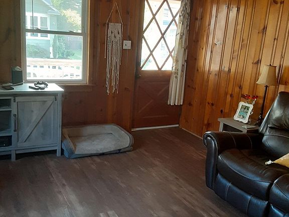 This spacious 4 bedroom, 1 bathroom bungalow is on a quiet, dead end street. It features a great layout, spacious bedrooms, a fenced in yard, off street parking, and a basement. A covered front porch provides a welcoming entrance to this home. From here you enter into the living room which has beautiful knotty pine walls (perhaps you could paint them for a different feel) and newer vinyl floors that flow into the dining area. Just off here is the updated kitchen with maple color cabinets, tile floors, and nice counters. Appliances are included. The hallway just off the dining room provides access to the bedrooms & bathroom. The updated full bathroom features tile floors & tub surround, and updated fixtures. There are also two generously sized bedrooms with neutral paint and carpets. Upstairs boasts two surprisingly large bedrooms for even more space. The backyard features a covered porch that overlooks the fenced in yard, and shed with electric. The full basement features shelving for storage, work benches, and the laundry hookups. 2021-08-13