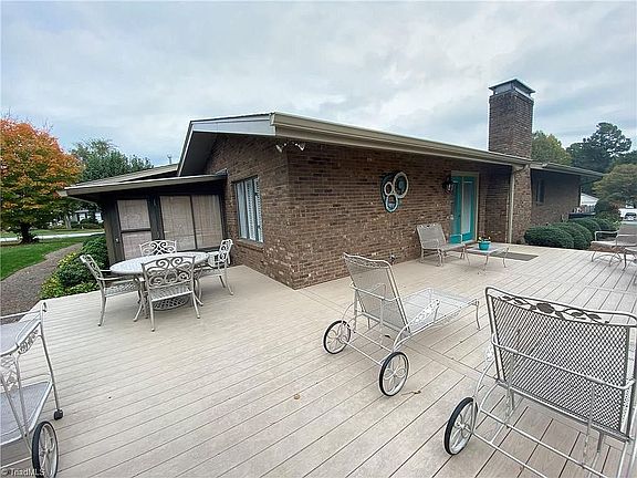 This brick and stone home is located in Archdale's premier Westwood neighborhood. It features a circle drive, 3 spacious bedrooms, large family room with vaulted ceilings and fireplace with gas logs, large dining room, sunroom, large laundry room. and attached garage with plenty of storage. The kitchen is newly remodeled with ceramic tile floor, granite countertops, tile backsplash, and stainless steel appliances. Both baths are newly remodeled as well, and the master features a large walk-in shower. The outside features new Trex decking, an outbuilding, and great landscaping. One level living in a wonderful, safe neighborhood; and move-in ready!