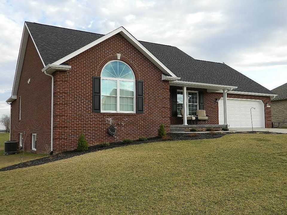 Beautiful, extremely well maintained home, professionally landscaped. Perfect location, has that out in the country feel, but close to everything; shopping, sports park, churches, and schools. All brick ranch home features: large living room with fireplace and cathedral ceiling, roomy kitchen/dining area with tray ceiling that opens out to back deck. Full basement has large windows with rough-in bath.