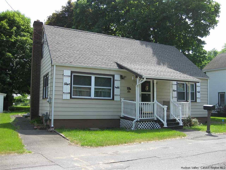 This adorable and affordable Cape home is in tip top shape and well cared for by it's current owner. The roof is just a year old and the furnace and gutters are 3 years old. Also, there are insulated replacement windows and doors throughout. Situated in this quiet little community on a quiet little street this home has a lot of great space inside. There is a good sized living room, eat in kitchen with an updated counter top, ceramic tile flooring and updated appliances along with 2 bedrooms and a glassed enclosed back porch. The upstairs is finished with 2 more rooms that would be great for a den and a guest room. All of this on a large flat usable almost 1/4 acre lot that goes right through to the next street. There is also a storage shed on the property. It appears there are wood floors under the carpet in several rooms also. The location of this home gives you easy access to the City of Kingston, Saugerties and it is minutes to the Kingston/Rhinecliff bridge. Close to all sorts of shopping as well. 2 hours out of NYC
