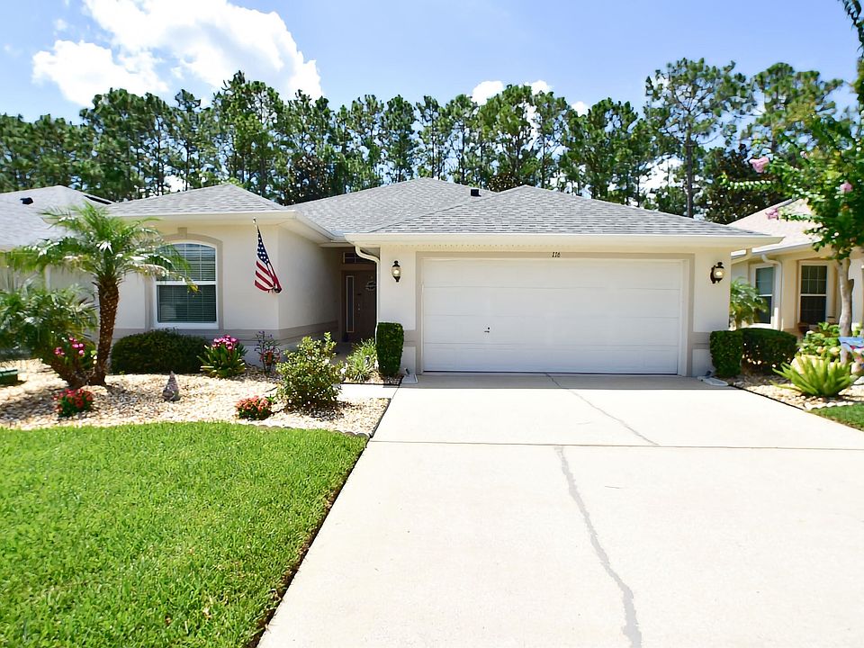 Welcome Home to Rivergate, a quiet, gated community with underground utilities, an Olympic-size community pool and game room (Clubhouse). The Open Floor Plan of this Seagate built home has it all; Kitchen with Dark Wood 42" Cabinets, Granite Counter tops, large pantry and a eat in kitchen nook. The granite bar between the kitchen and living room make for easy entertaining, the cook can be part of the social activities while preparing. The Primary suite has a large walk in closet, the in suite bathroom has dual sinks with granite counter top, a large tiled shower with glass block window and a good size linen closet in the separate water closet. Its either a 2 Bedroom with a Flex room featuring French Door Entry, or add a closet and it becomes a 3 bedroom. The all Season Room was an add that could be used in so many different ways.... Seagate style includes: Knock down textured ceilings, archways, plant shelves and rounded corners. Lots of Privacy as you back up to the woods. More Updates: Fully wired for Generator, New Miracle Windows in 2020, All Faucets replaced when Kitchen and Bath counters were replaced with Artisan Marble 2020. The A/C was replaced with a Carrier in 2021. Full A/C Duct cleaning in 2022. The Primary bedroom and the Guest Bedroom newly carpeted 2021. New Roof in 2022, AK Certified Pinnacle Shingles with 15 Year transferable warranty. This year we have completed the Enclosure of the Lanai with Slider and Bay Window. Tempered glass, lifetime glass breakage transferrable warranty, hurricane rated Miracle Windows.