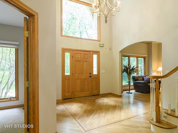 This wonderful private home is located in a beautiful wooded area of north Barrington. The captivating grounds will be your private retreat from the world! Swimming pool with large two tier deck, play set and room to roam. The home boasts four large bedrooms upstairs, an office on the first floor, and a bedroom in the walk-out basement with a murphy bed! Large two story entry way with hardwood floors throughout the first floor (excepting the office and laundry room). Nine foot ceilings and recessed lighting throughout the house! Gourmet kitchen with Corian countertops, 42" cabinets, and stainless steel appliances. Custom master bedroom with tray ceiling and exotic master bathroom with whirlpool bathtub and custom organizers in the walk-in closet. Central vacuum system and Grohe faucets throughout house. (New pool liner & heater in 2019, a/c 2013, water heater 2013, roof 2017, central vac motor 2017)