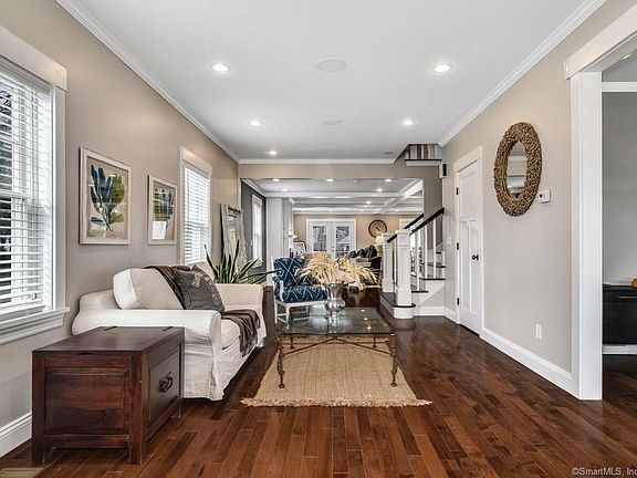 Prepare to be impressed! Thoughtful & meticulous renovation has been completed on this charming farmhouse colonial, featuring an open floor plan for today's lifestyle! Light & bright custom kitchen/family room combination will wow you, with top of the line appliances, quartz countertops and bar seating at the large center island-perfect for entertaining. Living space features a gas fireplace and built-ins that smartly hide the TV! 2 sets of french doors let the sunlight flood the space and allow access to the deck and large, level yard. Plenty of room for a pool! The second level features a luxurious master suite with steam shower, soaking tub, double sink and marble throughout. 3 closets complete the space! 3 additional bedrooms each have recessed lighting, plenty of closet space and hardwood floors. Completely dry basement could be finished to a playroom or recreation space. Plenty of additional storage in the 2 car garage with large loft space. Fabulous home for a fabulous price!