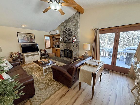 Feel at home in this family-friendly, all-season townhome located slope-side in the Forest Cottage development, just a short walk from world-class ski trails in Bretton Woods. Recently renovated, this lovely cottage offers a cozy open-concept living area with updated decor, a stone fireplace, and a private backyard with a babbling brook. The lower level features an extra living game room, perfect for relaxation and entertainment. The fully stocked kitchen is equipped with stainless steel appliances and a drip coffee maker, catering to all your cooking needs. The open-concept dining and living area provides a dining table for eight and comfortable couches by the fireplace, complete with high-speed Wi-Fi and a TV. Step off the large deck, equipped with a grill and outdoor dining, into the private backyard. Guests can enjoy discounted tickets to the Cog Railway and 25 pool and gym passes at the Mountain View Grand Resort and Spa. Parking is limited to two vehicles at the unit, with overflow parking available at the ski area parking, a three-minute walk away. Additional trash pickups during your stay are available for $10 per pickup. Located in Bretton Woods, New Hampshire's largest ski resort, this home is minutes from the historical Mount Washington Hotel and its award-winning spa and restaurants. Enjoy activities like skiing, tubing, mountain biking, and hiking, or explore nearby attractions such as the Cog Railway, Santa's Village, and Storyland. The shopping outlets in North Conway are also a scenic drive away. This home is located in a quiet, family-friendly resort area. Quiet hours are from 10 p.m. to 8 a.m., and noise levels should be kept low during the day. Unauthorized pets or guests are subject to a $300 fee and immediate termination of your stay with no refunds. A $100 fee may be imposed for violations of quiet hours, and a $250 fee for smoking inside the unit. No trash or food is to be left outside due to the presence of wildlife, with a $100 fee for violations. Check-in is any time after 4 p.m. and check-out is at 11 a.m. Unauthorized early arrivals or late checkouts are subject to a $100 per hour fee.