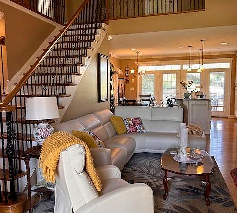Classy, pristine townhome, 3BD/2.5BA/2 car GRG, in Maywood. Lots of natural light, incl 4 door exit to partially covered deck, fenced backyard,w/beautiful views. Awesome built-in entertainment center in LivRm, w/gas FP, &open plan w/living rm/kitchen. Huge bar area w/sink, granite counters, electric stovetop, stainless fridge, microwave- enclosed cabinet, DW all remain. Fancy painted kitchen cabinetry, also pantry.Spacious Primary BD-main flr-offering decorative tray ceiling, huge walk-in closet, Bath w/2 vanities, clawfoot tub, separate shower, chandelier over tub, handy laundry rm off closet. Hardwood flooring thru home, except tiled baths. 2nd flr offers nice landing area(great office, workout space, TV area), 2 large BD w/JacknJill bath). Additional SQFT compared to similar priced hom