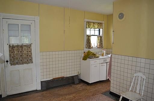 This charming New England home needs to be restored to its former glory! Large, bright open kitchen. Family room and dining room have hard wood floors. One full bath on the first floor. Beautiful trim and woodwork throughout this home. Three bedrooms upstairs. Large farmer's porch on the front of the house with gorgeous wood accents. Detached one car garage. There is a shed on the property for storage. Town water and sewer!