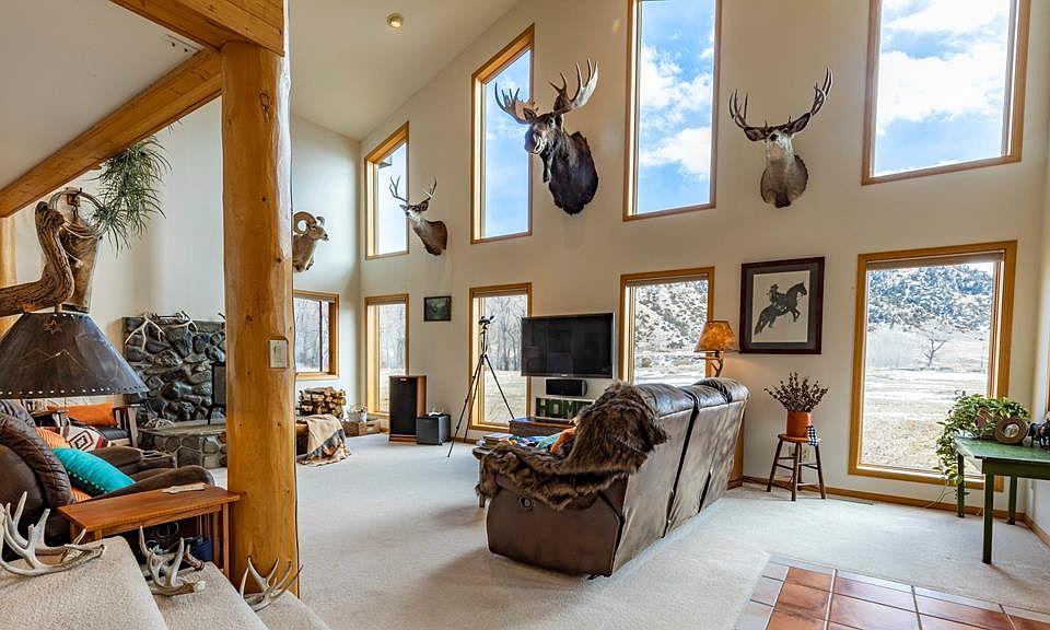 • Exterior Features: Acreage Fenced, Deck, Dirt Ditches, Flat Terrain, Horse Property, Irrigated, Landscaping, Mountain View, Patio, Rolling Terrain, RV Parking, Sprinklers, Storage Building, Hunting, Fishing, Recreational, Wooded Acreage, Production Ground, River Frontage, Spring