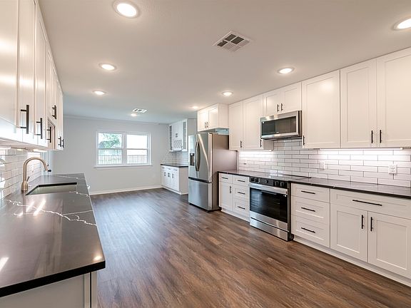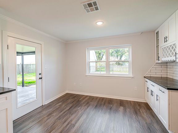 Completely updated and fully restored two-story home located in a well-established neighborhood on a cul-de-sac and in Flood Zone X. Offering approximately 3,298 square feet with 5 bedrooms, 3 bathrooms, and a dedicated office, this home delivers space, function, and flexibility. The primary suite is located on the first floor and includes a private enclosed porch. Multiple living areas include a living room with a wood-burning fireplace and a separate family room. Dining options include a formal dining room and a breakfast nook. The updated kitchen features quartz countertops, subway tile backsplash, under-cabinet lighting, and modern finishes. Luxury vinyl plank flooring runs throughout the first floor. Exterior features include a detached garage, screened patio, and a fully fenced yard. Move-in ready with extensive updates in a quiet, established setting.
