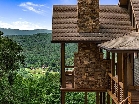 Experience the epitome of luxury living at the Lomonaco Homes Lodge. Step into this opulent and tranquil mountain retreat, where stunning views of majestic mountain ranges await. This residence seamlessly blends classic cabin aesthetics with contemporary elements, enhanced by exquisite furnishings, making it the ideal sanctuary for those seeking serenity and rejuvenation. Upon entry, you are welcomed by an elegantly designed open staircase with metal accents, serving as a captivating centerpiece for the lodge. A Lomonaco-style stone fireplace and an abundance of windows flood the space with natural light, creating a warm and inviting ambiance. This lodge features five spacious bedrooms and four and a half baths, along with generous walk-in custom closets to accommodate guests comfortably.The vast outdoor decking and airy open floor plan are perfect for hosting both intimate gatherings and larger dinner parties. The chef's kitchen is a culinary enthusiast's dream, equipped with high-end appliances, custom cabinetry, a distinctive trough-like sink, a generous island for entertaining, and a walk-in pantry. Beautiful hardwood floors lead you through oversized closets adorned with signature carpeting, while rustic touches like wood beams, stone fireplaces, premium lighting, metal accents and upgraded tiles enhance each room's appeal. The main level also includes a laundry room with extra cabinetry for added convenience. Expansive porches on every level offer breathtaking long-range mountain views, complemented by additional stone fireplaces that create a cozy atmosphere for mountain evenings. The terrace level presents an open space perfect for entertaining, complete with a secondary kitchen featuring a custom island, a movie theater, a bunk room, bedroom and bath, and an outdoor dining area. Enjoy tranquility in this stunning home, surrounded by lush landscaping. The lodge strikes a perfect balance—authentic mountain living close to all adventures.