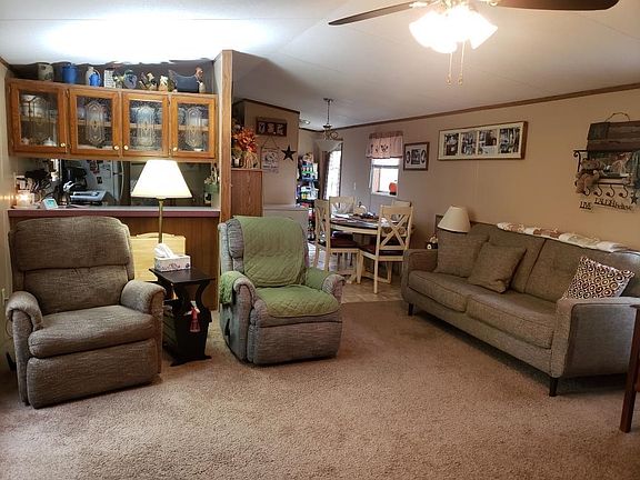 Enter into the vaulted ceiling family room with natural light coming in the windows. The living room is open to the dining area. In the kitchen are plenty of cupboards and counterspace. Updates include: Family room in 2021, roof and master bathroom with walk in shower, flooring, gas stove, dishwasher, furnace, a/c in 2020. Lot rent is $330.00 a month and $10.00 each additional persons. Buyers must be approved by Knollwood Estates Mobile Home Park management. Directions: Straight on Vista, Left on Roundtree.