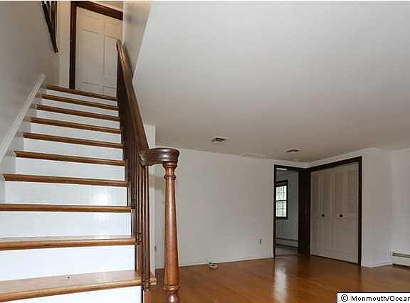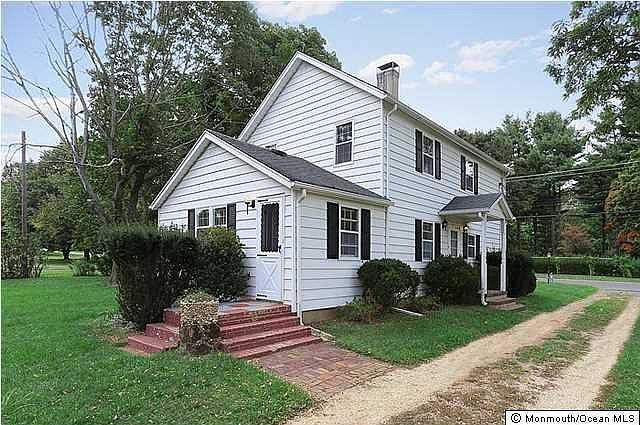 COLTS NECKS BEST BUY! Country colonial set on over 1.25 acres of lush level property bordering TRUMP NATIONAL & GREEN ACRES! Well maintained home includes large kitchen w/ plenty of cabinets, dining room, bright living room, 2 large bedrooms w/ a possible third, 1.5 baths, gleaming hardwood floors, h.w.b heat. Grounds include one car detached garage, in-ground pool & specimen plantings. Minutes to 18, NYC transportation, shopping & the Shore!