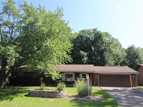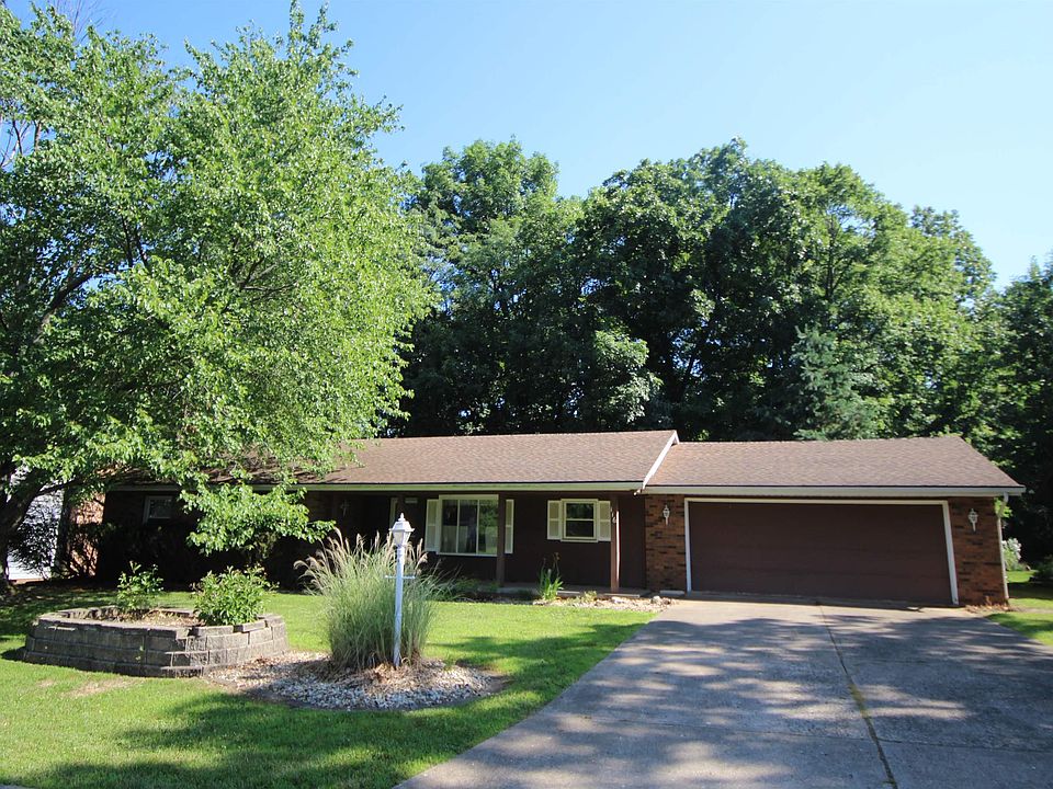 Great opportunity in this 3BR/2BA mostly brick stepsaver ranch on a .34 acre wooded lot! Inviting 28 covered front porch leads into the tiled entry foyer. Large living/dining room combination with corner fireplace, bow window and Andersen slider to the 18 x12 patio. Eat-in oak kitchen features a tile floor, pantry and bay window. Fully applianced including stackable washer & dryer. Main bathroom offers a jetted tub and skylight. Master suite offers fresh paint and new LVT flooring in 2019. Remodeled master bathroom January 2022 includes tiled shower. Newer vinyl windows except bay and bow windows. 2 stall attached garage with pull down stairs to attic. New furnace, central air & digital thermostat 2019. Situated on a private .34 acre wooded lot with wooden bridge over creek. Home to be sold as is.
