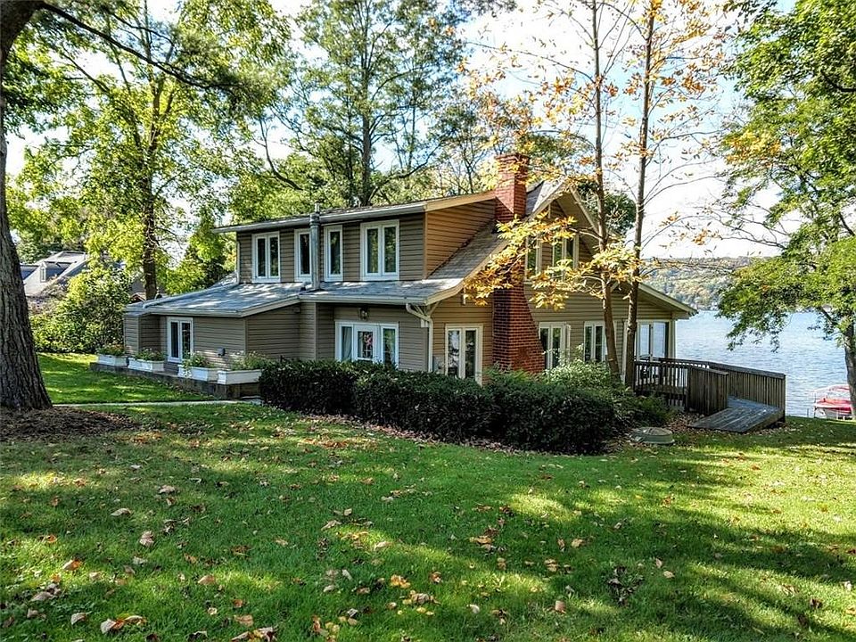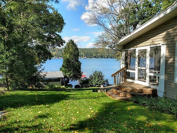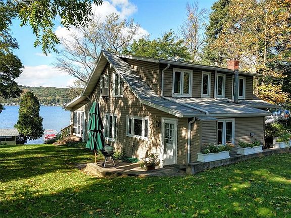 Classic and Charming Keuka Lake home on East side near Lakeside Country Club - As many as 6 bedrooms, 3 full baths, light and bright open living and dining area with screened front porch overlooking 100' of natural beach! Extra large grassy yard for entertaining and lots of parking! New foundation with 2 bedrooms or family room with full bath and laundry! A very special lakefront property with pubic water, sewer and natural gas!! Ready for a family to enjoy in 2019!
