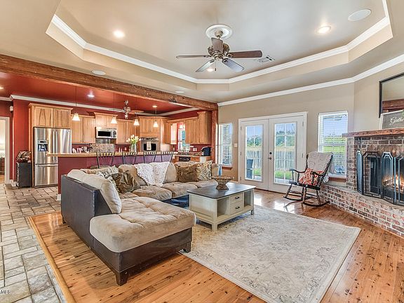 Looking for a custom home and great country views? Look no further! This 3 bedroom, 2 bathroom home has an open/split floor plan with over 1700 sqft and upscale finishes throughout. Located on a one street neighborhood, in a cul-de-sac, with zero rear neighbors, this property offers safety and privacy. The kitchen includes stainless appliances, cypress cabinets, and a stand alone island with a bar over looking the living area. A beautiful wood beam separates the living area which includes a wood burning fireplace and tray ceilings. A formal dining room sits off the living area and can be used as a bonus room. There is NO CARPET in the home. The master suite offers french doors leading to the back patio. The master bathroom offers his/her sinks, a separate shower and tub, and it has TWO CLOSETS! The back yard has a spacious back patio with a storage shed and double gate REAR YARD ACCES. This home offers many amenities for a great price! Qualifies for 100% financing for approved buyers.