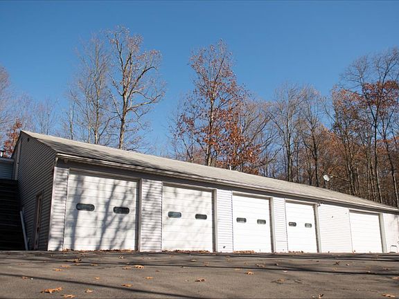 The car enthusiast's dream garage!! Private 3 bedroom, 2 1/2 bath Chalet with an attached 2 car garage and detached 8 car garage. Detached garage has heat, AC, paint booth, and 2nd floor storage or additional work area. Heated pool, hot tub, pavilion with bar, gazebo, Koi pond with waterfall, gated driveway, and much more! Newer decks and railings on house. New railings around pool. Driveway repaved in 2017.