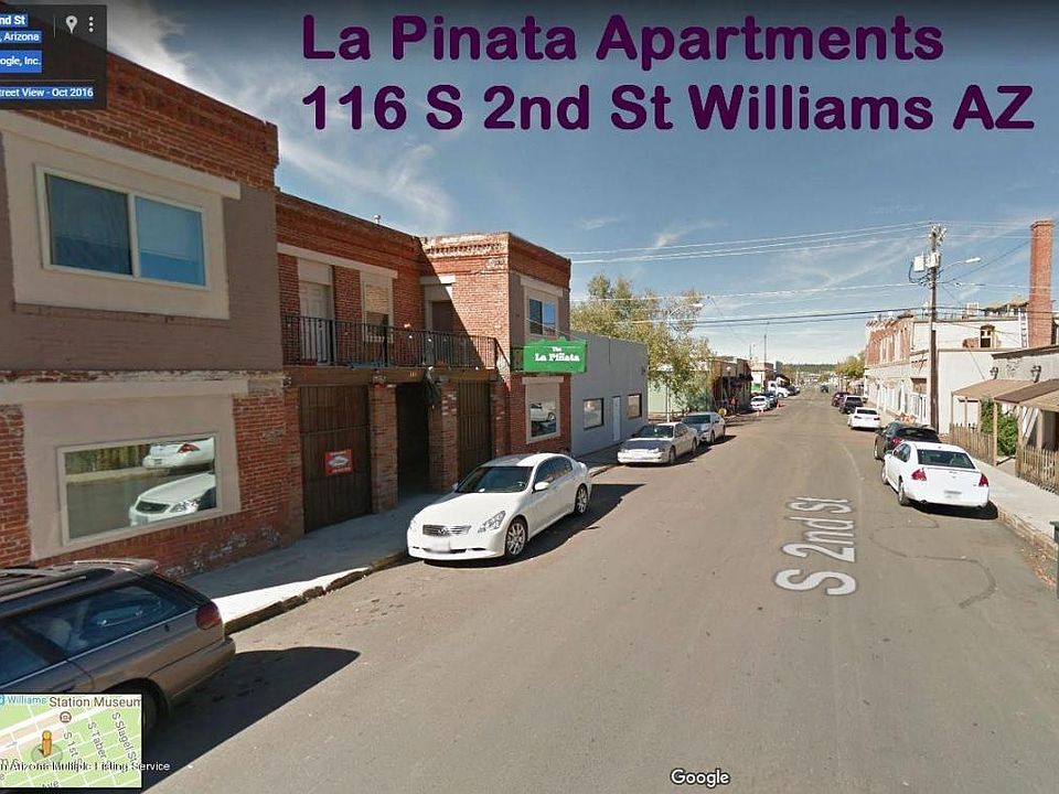Beautiful modern apartment in the Historic La Pinata Apartments. This historic building was reconstructed with loving care in 2013. Modern Forced Air gas heat, Ikea Cabinets, Gas Stove, Microwave and Tile baths all incorporated into a pleasing meld between gorgeous brick, modern conveniences and fantastic location. This building is 1/2 Block from the main interesection of Grand Canyon Blvd and Route 66. Close enough to participate in the activities downtown. Quiet enough to enjoy peaceful rest and relaxation. Off Street Parking available. Laundry On Site. Owner Agent
