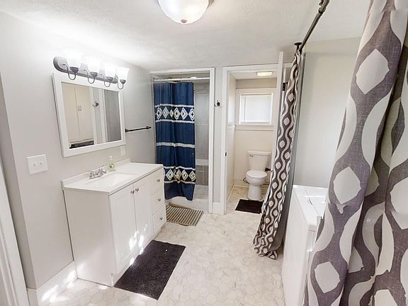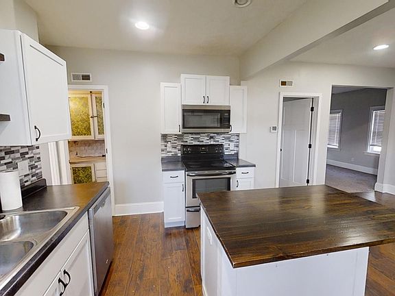 This 2 bedroom, 1 bathroom home features many updates throughout! Totally updated kitchen, living room & bathroom. Kitchen features an island with all new kitchen cabinets and countertops and appliances included! Living room contains electric fireplace while in the bathroom you will find updates throughout featuring a tile shower. Detached one car garage with alley access. All measurements approximate