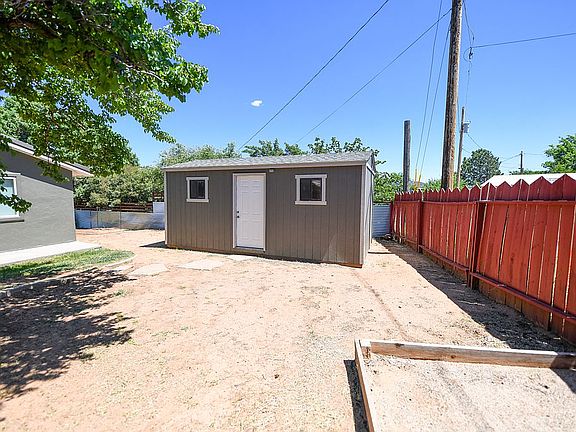 Beautiful single family home located on .22 acres of landscaped grass and garden. The exterior of the home has recently been re-painted, and the newer metal roofing inspected. Other exterior features include updated landscaping with a fully automated sprinkler system. The interior of the home has been fully re-painted and the carpets deep-shampooed. The home boasts a living room, a large open-concept kitchen/dining area, laundry room with newer washer and dryer, three bedrooms, and two full bathrooms. The master bedroom includes a home office space. The master bathroom includes a brand new walk-in shower and double vanity sinks. A bonus 200 square feet is available in the insulated and powered 10'x20' detached workshop. Also included is a separate 8'x16' garden shed that provides ample storage space for garden equipment. The side yard has been recently cleaned in preparation for a potential carport or workshop extension. This home is a must-see!