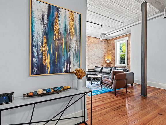 Large windowsBrick wallsOriginal hardwood floorsTall ceilingsModern furnishings