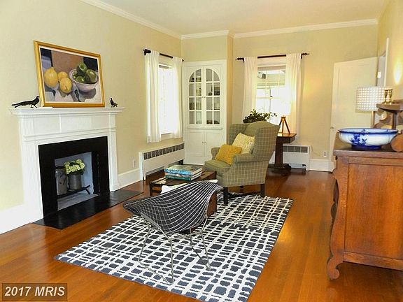 Meticulously-kept brick colonial w/historic grace! 2 min walk to Main St. Gleaming orig hdwd floors. Delightful kitchen loaded w/cabinets. Perennial garden incl dogwood, peonies, mature boxwood. Bright sunroom w/French doors. Cedar walk-in closet. Crystal rosette doorknobs. Vast & spotless unfinished bsmnt. 30yr roof installed ~08. Come relax on your side porch - birds love it here & you will too!