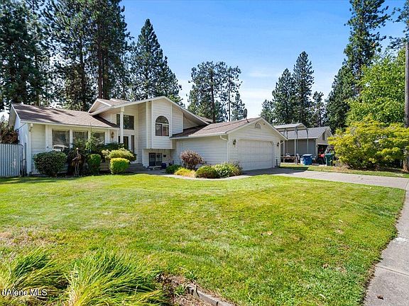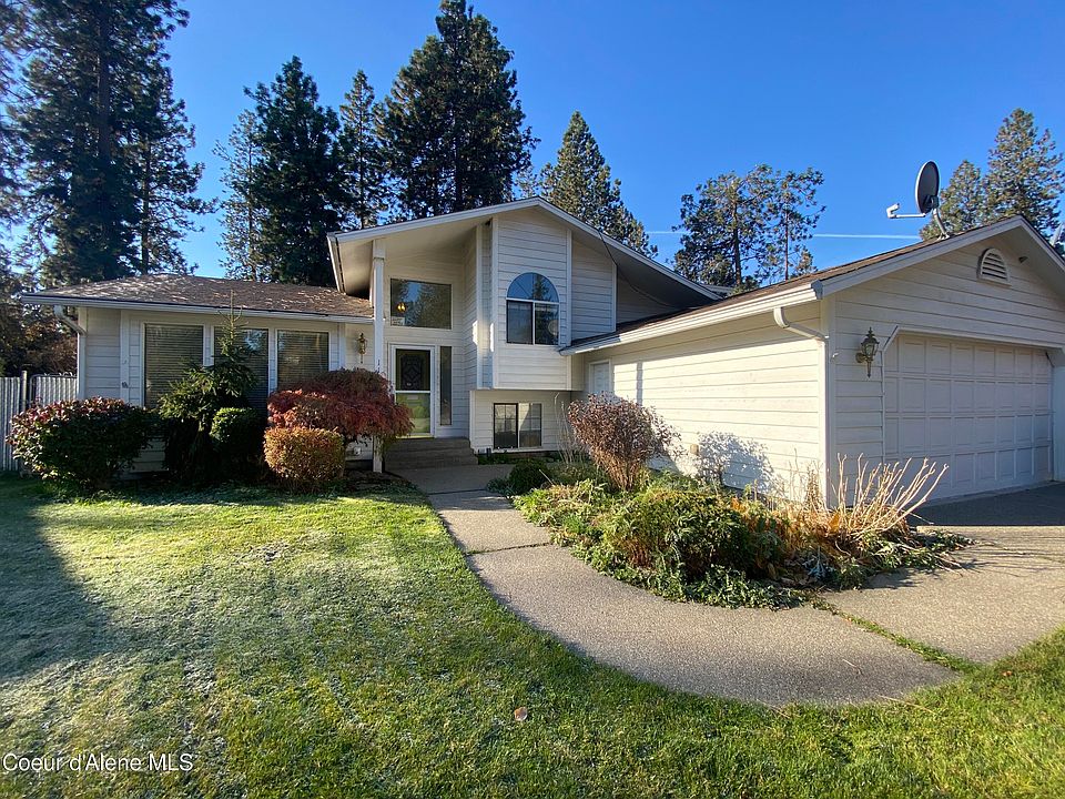 What a lovely home (getting new paint and carpet) and setting in the beautiful Post Falls Idaho! This multi-level home has real hardwood floors, a balcony from the master bedroom suite, plenty of windows filling the home with natural light, an electric chair lift is attached to the stairs, home has new roof, and a very thoughtfully landscaped yard with a Secret Garden feel on the back deck. Front and back sprinkler system make it easy to keep this mature landscape nice and green! Carpet and paint is intact in home, but paint could use updating/refreshing and carpet replacement would really make this home perfect. When this neighborhood was built, this was the model home. It really shows with how beautifully designed this home is. Tons of curb appeal!