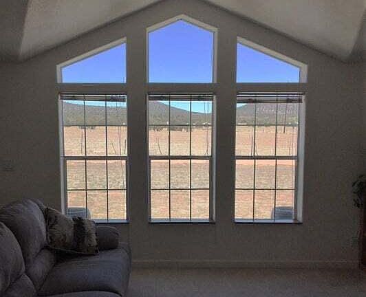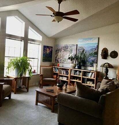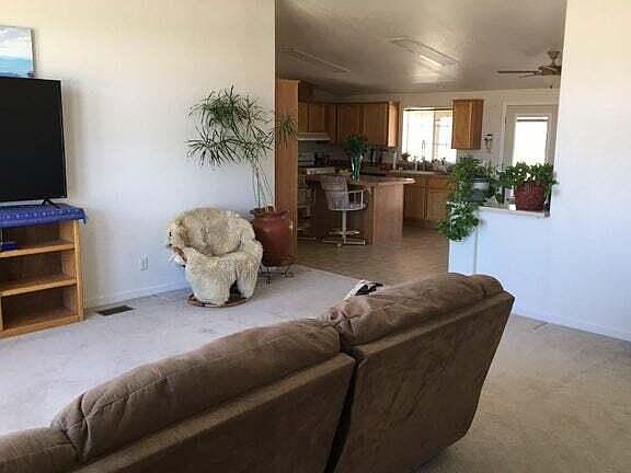 1.28 acres with beautiful CAVCO double wide with mountain views. The south facing covered back patio is 672 sq/ft of relaxing shady area. Home has concrete slabs around all sides. Ranch style, 3 bedroom, 2 bath with large kitchen island and dining room. Den/Office area. Family room, kitchen and dining room is open and airy with all the windows. Garage has studio apartment in back. Irrigated yard. Private well.