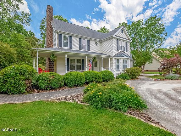 This home has it ALL. Outside, elegantly manicured lawn and flower beds coupled with blueberry and blackberry bushes, fig trees, and raised beds for a garden or flowers. Circular driveway with paver walkway around the home that coalesces into a spacious patio in the backyard. There are two outbuildings on the property, with the larger one great for lawn equipment and additional storage space. Inside, the downstairs flooring is made from reclaimed pine stained to bring out the natural beauty! Wood burning fireplace, flex space, formal dining area, breakfast area, and an expansive kitchen with granite countertops and stainless-steel appliances WITH a large FROG complements the downstairs area. The second floor provides a huge ensuite primary bedroom along with a full bath and two well portioned bedrooms. The third floor provides a great hangout for reading, playing, and napping. Furnace and downstairs heat pump is one year old. Crawlspace encapsulation and new duct work completed in 2023. Sellers to provide $600 toward a one year home warranty of buyers choice. WELCOME HOME!