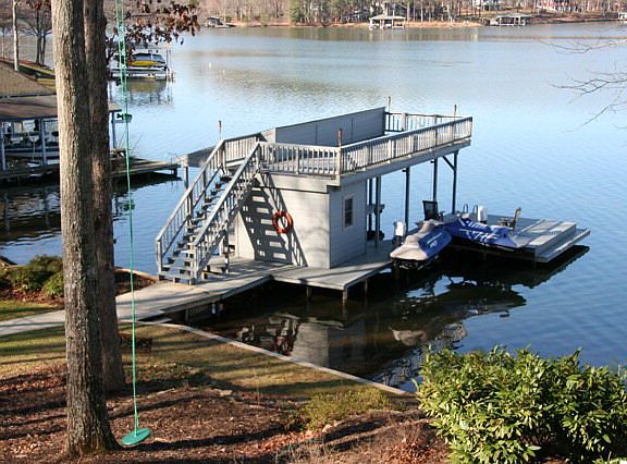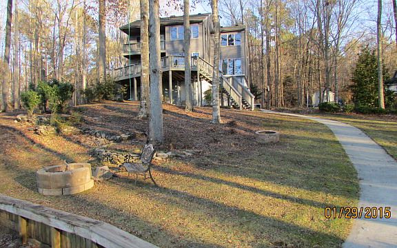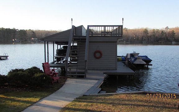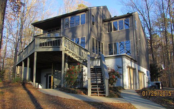 This great contemporary WATERFRONT home with WALK OUT BASEMENT has it all! Fully furnished with a few exceptions. Major renovations were done in 2011 along with new upstairs HVAC. In the kitchen are beautiful cherry cabinets, tile floor,granite counter tops, tile backsplash and upscale Bosche appliances. All 4 bathrooms were completely redone with tiled showers and floor, marble counter tops & sinks. Beautiful hardwood floors. Main level bedroom could be master with its beautiful bathroom attached and 3 bedrooms/2 baths upstairs. Upstairs bedroom currently used as master and has private lakeside balcony. Full bath in the walk-out basement. DEEP WATER, DOUBLE BOATHOUSE WITH SUNDECK, irrigation system, community water and landscape lighting. Paved circular drive, double attached garage and large parking area. Perfect for recreation, investment or full-time home!