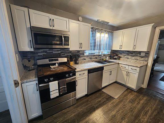 Charming property with numerous updates! The living room features brand new carpet, and the kitchen has been completely renovated with new cabinets, countertops, flooring, backsplash, and a sink. Both bathrooms have also been remodeled. The home boasts new siding, windows, gutters, and a roof. It offers plenty of storage, built-ins, and beautiful hardwood floors. One of the upstairs bedrooms does not have a vent and uses a heater for warmth. The basement living room has great potential and could be easily finished, while the basement bedroom is nonconforming. The exterior includes underground sprinklers, a pergola, a shed, and a new fence.