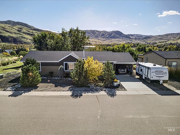 Enjoy beautiful mountain views from this charming home situated on .51 acres, offering the perfect blend of country living and modern comfort. Plenty of space for animals and toys, this property offers RV parking, complete with power and a dump station. Enjoy summer evening BBQs on your Trex deck while taking in the stunning mountain scenery. The home features an open split floor plan with large, bright windows that fill the living spaces with natural light. The spacious kitchen is a cook’s delight, showcasing tall cabinetry, a farmhouse sink, pantry, and plenty of counter space.. Relax in the cozy living room with a wood stove, ideal for cool Idaho evenings. The large primary suite offers a luxurious soaker tub, walk-in shower, and dual vanity sinks for a spa-like retreat. Outside, enjoy two storage buildings - a 10x12 shed and a 10x16 loading shed - providing plenty of room for tools, equipment, or hobbies. Located close to the Payette River, recreation land, hot springs, and Black Canyon Dam, where you can enjoy fishing, hiking, and ATV riding. With wide-open views, usable land, and space to spread out, this property offers the freedom and tranquility of Idaho living. Horseshoe Bend is a vibrant small town and gateway to the Idaho backcountry, this home is only 25 minutes to Eagle - the perfect balance of rural charm and easy access to city amenities.