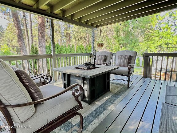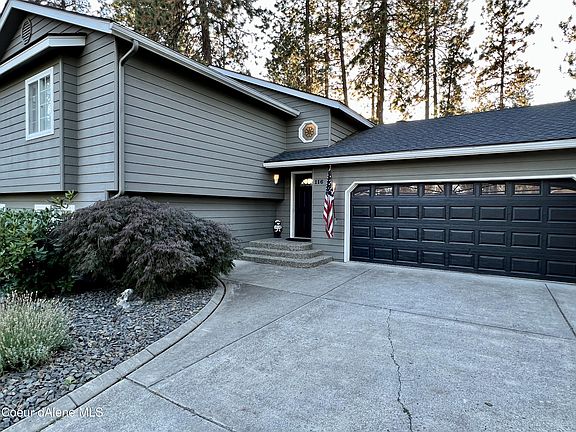 Large, meticulously kept, open-concept split-entry home surrounded by mature pines in the highly sought after neighborhood, Pinevilla West. No HOA! Only two minutes from I-90, yet nestled in the trees walking distance from the Spokane River. The kitchen features cherry soft-close cabinets, stainless steel appliances, granite countertops, and a walk-in pantry. Enjoy vaulted ceilings, a gas fireplace, and beautiful forest views from the great room picture window. Bathrooms are updated with custom cabinets and stone counters. RV Parking with 30-amp power and an oversized two-car garage with workbench and lots of built-in shelving. Big yard with a covered elevated deck, another ground-level deck, sauna (negotiable), and hot tub. Mature, professionally designed landscaping with curbs. New water heater (2022), new roof (2020). Seller is a licensed Idaho agent.