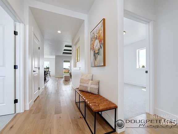 MOVE IN READY! The Davenport by Tresidio Homes! House all your toys, cars, and tools in the massive 4 -CAR GARAGE! This plan features 3 bedrooms , 2.5 baths and a dedicated office! The great room boasts a gorgeous gas fireplace, and a soffit ceiling with eye-catching beams. Kitchen comes complete with gas cooktop, oversized island, expansive real wood cabinets, and solid surface counters. Open concept with a split floor plan, the primary bedroom/bath features 2 stunning vanities, oversized tub, and a HUGE walk in tile shower! Enjoy all the extra storage space in the oversized laundry room! Large EAST facing backyard makes outdoor living a year round possibility! Enjoy a premier new community in Kuna with quick access to Meridian Road! Community pool , playground, & BEACH situated right on Indian Creek makes this a lovely setting to come home to! Builder incentive available to go toward buying rate down & closing costs.
