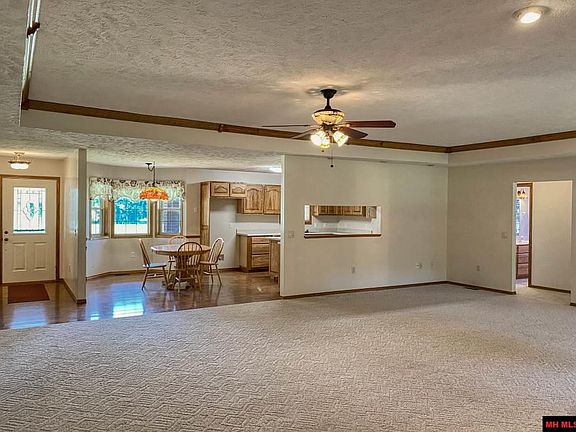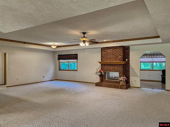 Large beautiful, well maintained, brick home on dead end road just minutes from Bull Shoals Lake and the White River. Home offers 3 bedroom/2 baths with bonus room and full bath off garage. Over 2600+ heated and cooled w/ 5921 under roof. Huge unfinished basement/ workshop area. Split bedroom floor plan, walk-in bathtub and walk-in shower in master + double closets. Nice family room with double sided fireplace to Living room. A must see! Your forever home!