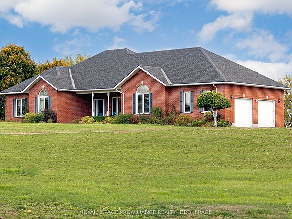 Set on a double lot at the end of a quiet cul-de-sac, this all-brick bungalow offers an exceptional blend of privacy, space, and natural beauty. With over 2.8 acres of level land and more than 300 feet of natural waterfront, this executive property is part of a sought-after community of custom homes-just a short commute to Napanee or Bath, or take the ferry to Picton and explore all that Prince Edward County has to offer. Offering over 4,000 square feet of finished living space, the home features an open-concept main floor with a bright and spacious living, dining, and kitchen area-perfect for entertaining or simply taking in the views. The main level offers three generous bedrooms, including a primary suite with French doors, a massive walk-in closet, and a large ensuite bathroom. The finished lower level extends the living space with a walkout to the waterfront, a third full bathroom, multiple flexible rooms, and in-floor heating throughout. Updated mechanicals include a new furnace, boiler, and well equipment for added comfort and efficiency. An extra-deep double attached garage provides plenty of room for vehicles, storage, or a workshop. With its serene setting,impressive frontage, and beautifully maintained home, this property offers a rare opportunity to enjoy waterfront living in a truly private and picturesque location.