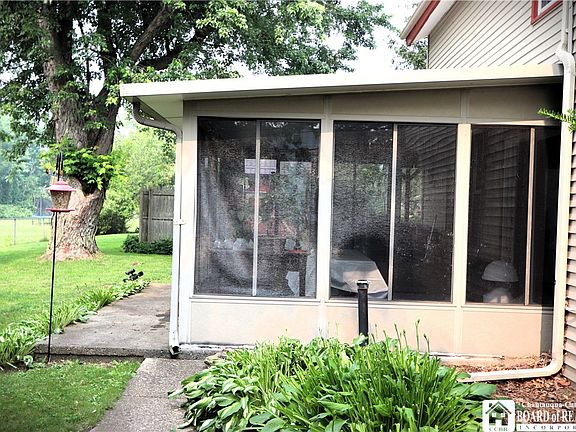 This is a very nice well-kept village home built in 1920 with 4 bedrooms and 1.5 bathrooms. Located on a nice corner lot with a large barn/garage built in 1940 with hay loft. There is plenty of parking space when family or friends come over. Just inside the back door is a large entry room that doubles as a tv room with a half bathroom and a back stairway. The kitchen has plenty of cabinet space and was remodeled in 2019. Off the side of the kitchen is a Florida room enclosure, great for morning coffee. There is a formal dining room which leads into the front living room. The home has two sets of stairs that lead up to the 2nd floor bedrooms. Upstairs there are 4 bedrooms and a full bathroom with a stand-up shower which was remodeled in 2017. The back stairs, hall and both back bedrooms are all hardwood floors. The house has two separate heating zones. Each zone has its own Lennox high efficient forced air heating system. Both were installed in 2015 along with a natural gas hot water tank. The exterior of the house is maintenance free with vinyl siding and all the windows are replacement vinyl windows.