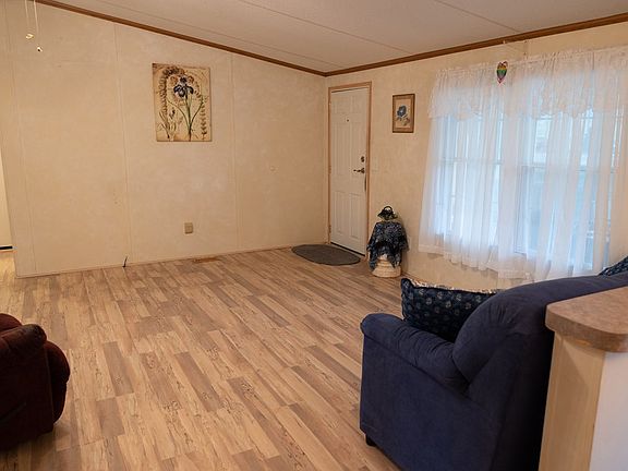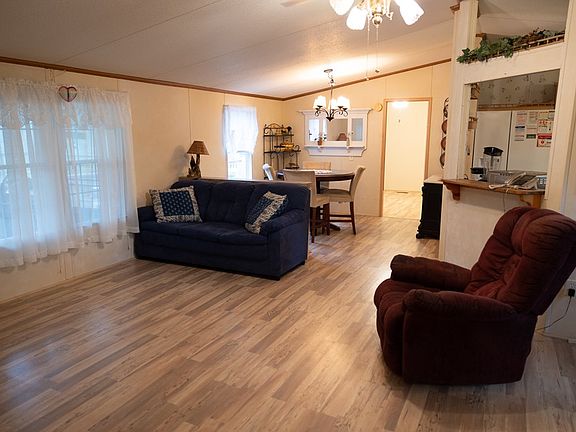 Main level living and ease of access are great features in this 3 bedroom/2 bath home in Meadowland Park (45+ community) conveniently located between Franklin and Clayton. You'll love the spacious feeling of the open concept living/dining/kitchen area. There are gas logs which can be utilized and enjoyed in cooler weather, so cozy up with your morning coffee or tea. If mobility is a challenge, the home is easily accessible with a ramp to the front door, and the primary bath has recently been updated with an easy access "walk in tub". Floors are nice and bright and easy to care for. A sunroom on the front of the home brings the outdoors in and is a great place for small pets to enjoy the warm sunshine. There's nearly an acre of land with this home which could be utilized for container gardens or as a canvas for updated landscaping or a flower garden. There's an outbuilding for lawn equipment as well as additional outdoor storage under the 2-car carport. Now's the time....make your move!