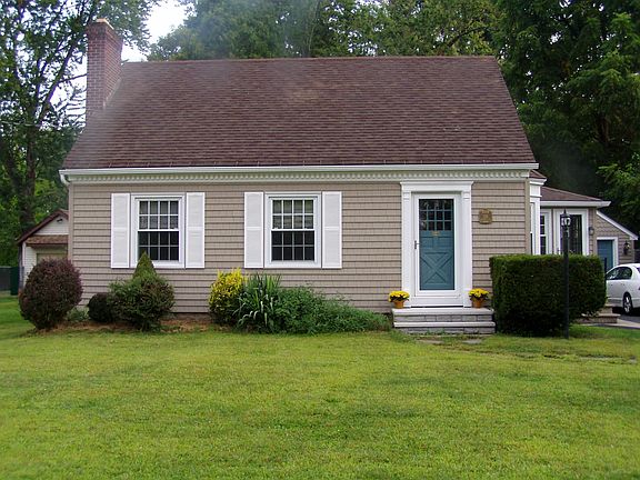 Cape Cod, tan cedar-look vinyl siding with scallops at the peaks, white shutters, white trim, brown roof. New Comfort windows (2006), Comfort siding (2008), Comfort sunroom (2008) & Comfort gutters (2008) installed by Comfort. New oven/range Feb, 2017. Bathroom renovated, updated March 2017. Property dimensions 60' x 210'