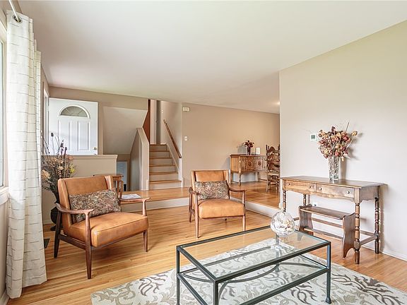 Nice, popular layout- open kitchen to dining to living area. Remodeled kitchen with generous cabinetry and countertop space & porcelain tile floor. All Appliance to remain. Dinette opens to bright & light eastern exposed 3 season room with access to the backyard. Hardwood flooring on first floor and bedroom areas. Updated full & half bath, Lower level get a way with cozy gas fireplace and very versatile space. Nice closet & storage space throughout the home. Dedicated laundry & utility room with walk out to the backyard. Low maintenance vinyl exterior, storage shed & double wide ( recently sealed)blacktop driveway. Furnace is 6years old, CA 9 years old, water tank 2 years old and roof is 9 months old. Side yard borders town green space. All your major money items are done!!!! Convenient location to shopping, schools town parks, restaurants, Route 390 & Thruway. Delayed negotiations begin on Sept 23rd at 5pm.