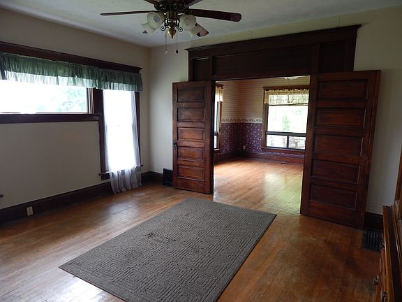 edrooms: 4-5 Baths: Full + shower This home features beautiful, original woodwork and wood floors. There is a galley kitchen, dining room, family room, formal living room with fireplace and 2 bedrooms on the main floor. There is a 1/2 story with that has an office, 2 bedrooms and a nice room that could be a family room or play room. There is a partial basement for storage, detached garage, small workshop and a nice front porch. There are some replacement windows, updated shingles and central H/A in a portion of the main floor. Give us a call to schedule a viewing! 2015 Taxes: $731.42 Listing Agent: Del Fischer