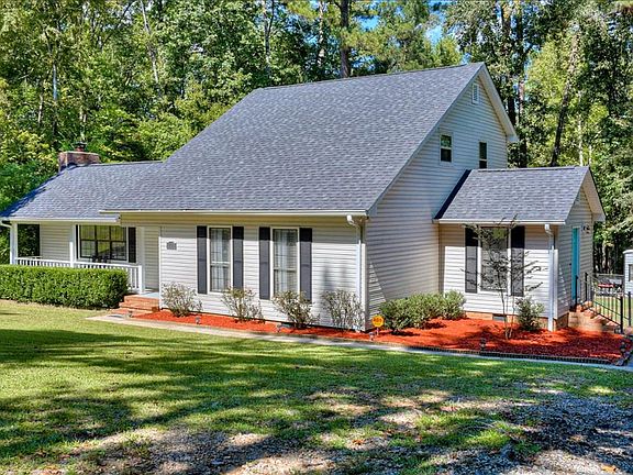 This absolutely adorable three bedroom Farmhouse with a rocking chair front porch sits on 1.5 acres just off Martintown Road in North Augusta with no city taxes and no HOA! You will love the layout of this home with the owner's suite downstairs and two bedrooms upstairs. The greatroom features a bricked in fireplace, and french doors leading out onto a covered screened 12x12 deck. The eat in kitchen has granite countertops, stainless appliances, and access to outside deck convenient for grilling. The owner's suite is located on the main level with three closets! Two of the closets are walk in closets. The ensuite bath features granite countertops and a tiled shower. Two bedrooms and a full bath upstairs. Large walk in attic storage!